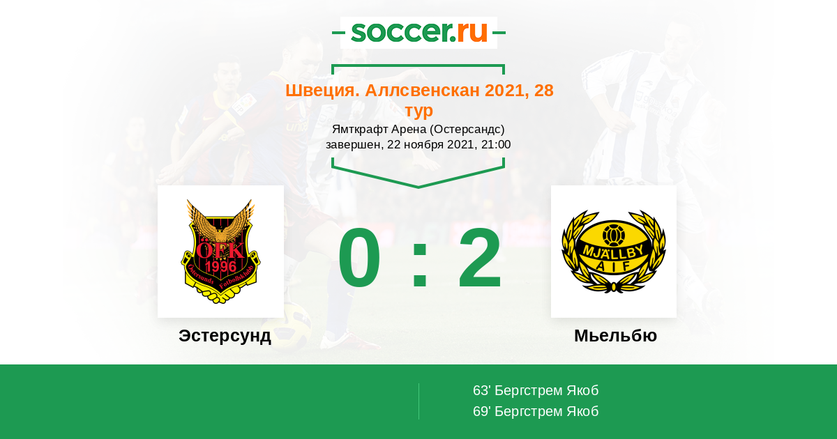 63' (0:1) Бергстрем Якоб (16) (Нильссон Джоэл (9))