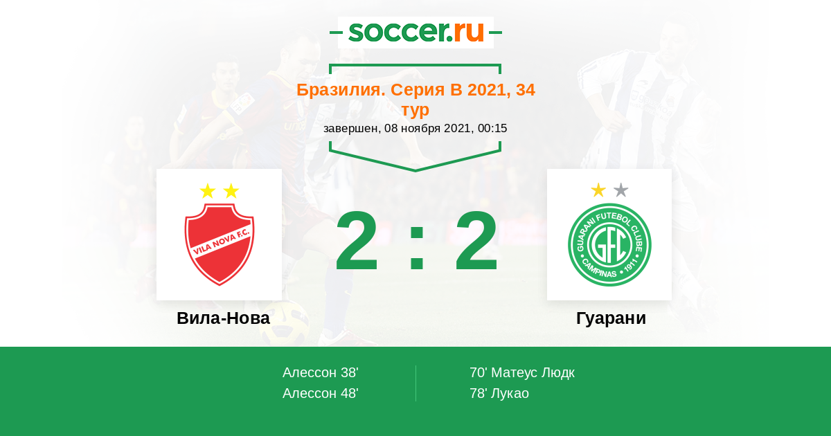 78' (2:2) Лукао (99) (Оливейра Андриго (10))