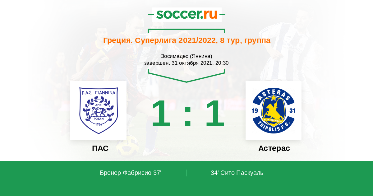 34' (0:1) Сито Паскуаль (40) (Альварес Федерико (29))