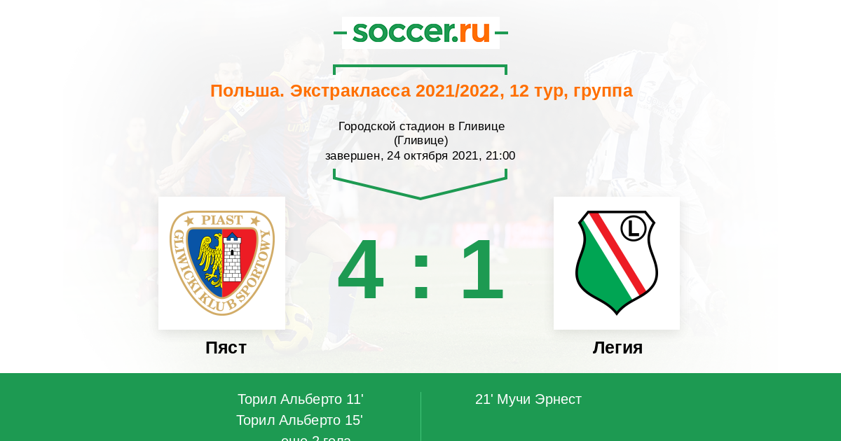 11' (1:0) Торил Альберто (9) (Пырка Аркадиуш (77))