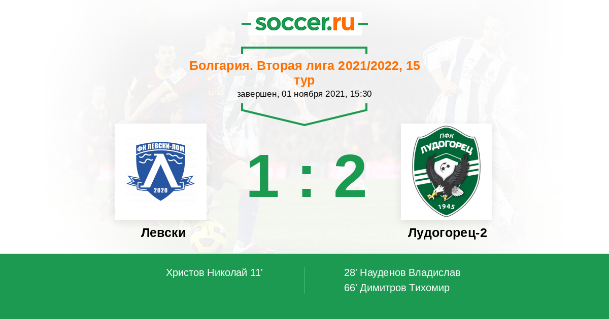 66' (1:2) Димитров Тихомир