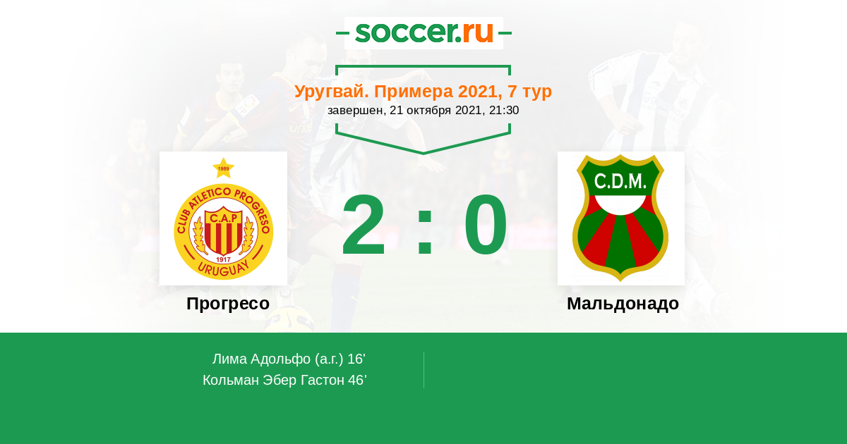 16' (1:0) Автогол Лима Адольфо (13)