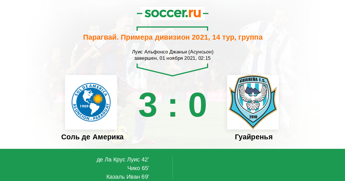 42' (1:0) де Ла Крус Луис (2) (Годой Фернандо (5))