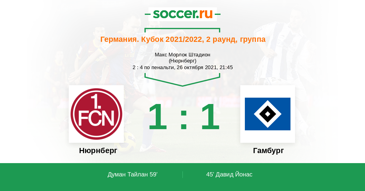 45' (0:1) Давид Йонас (34) (Киттель Сонни (10))