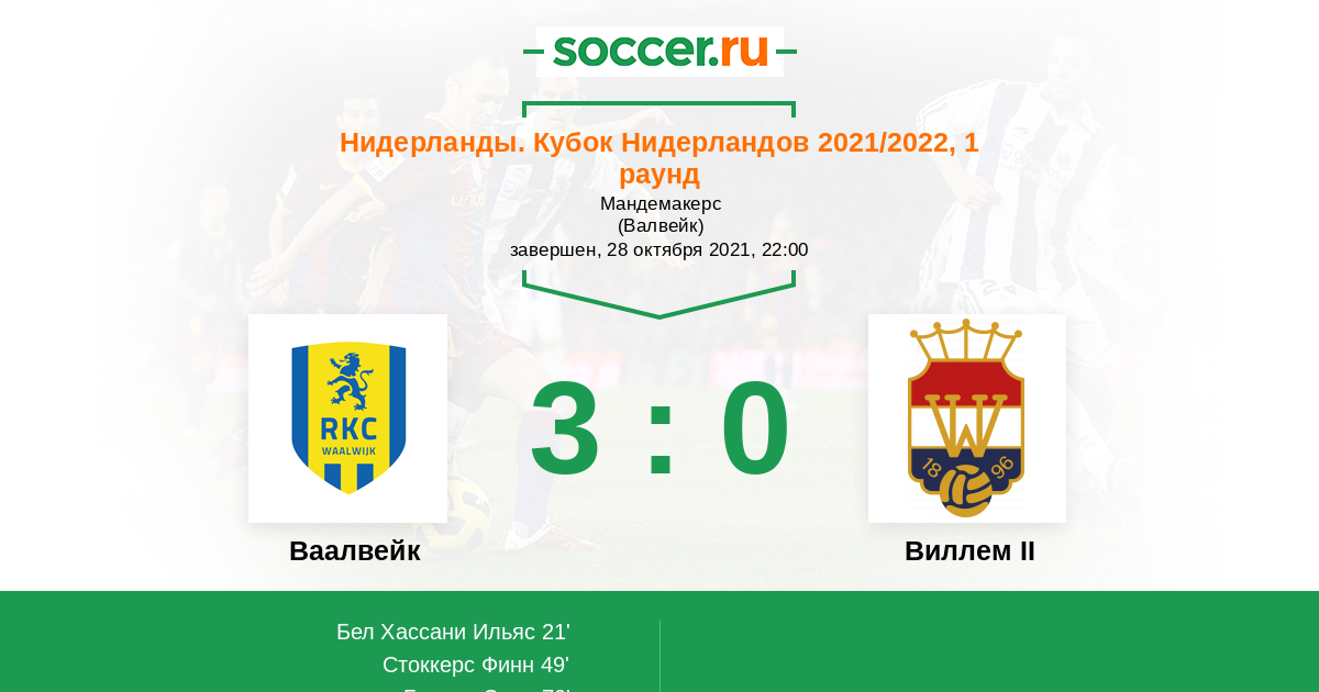 21' (1:0) Бел Хассани Ильяс (11) (Данеелс Леннерс (20))