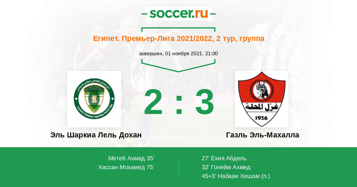 35' (1:2) Метеб Ахмед (17) (Котб Алаа (11))