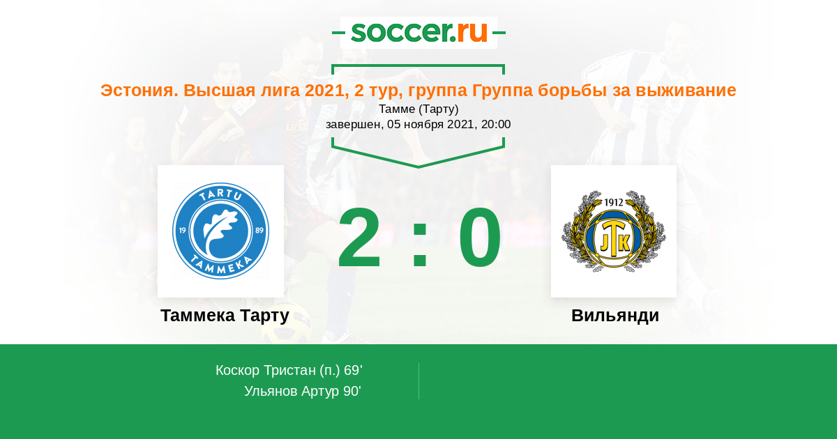 Запасные: 10 Ярвисте Михель (с 55'), 27 Ланеотс Доминик (с 90+2'), 2 Лянелаид Карл, 6 Уггери Джакомо, 13 Лаабус Рейо, 14 Нарусон Эгерт, 73 Тум Майт