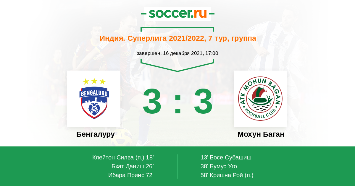 26' (2:1) Бхат Даниш (12) (Клейтон Силва (23))