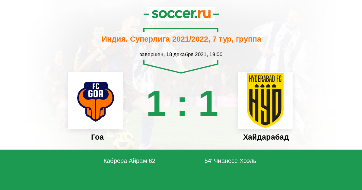 54' (0:1) Чианесе Хоэль (7) (Пуджари Нихил (27))