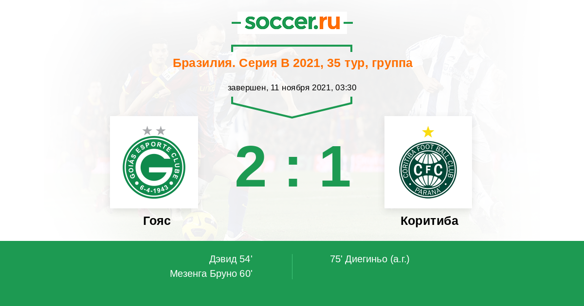 54' (1:0) Дэвид (3) (Виейра Араужо Элвис (10))