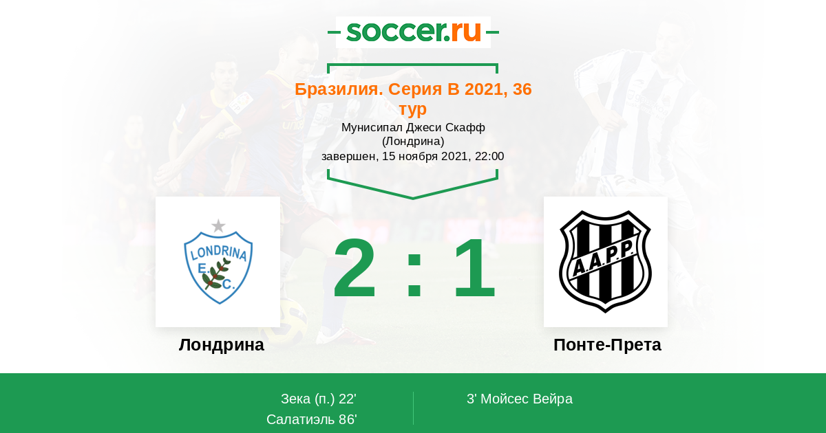 3' (0:1) Мойсес Вейра (21) (Камило (10))