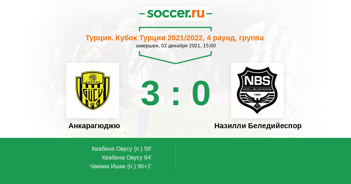 64' (2:0) Квабена Овусу (7)