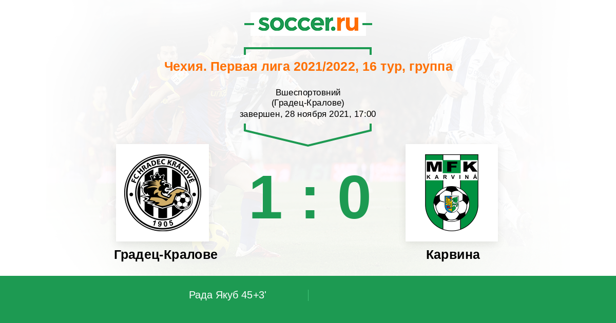 45+3' (1:0) Рада Якуб (23)