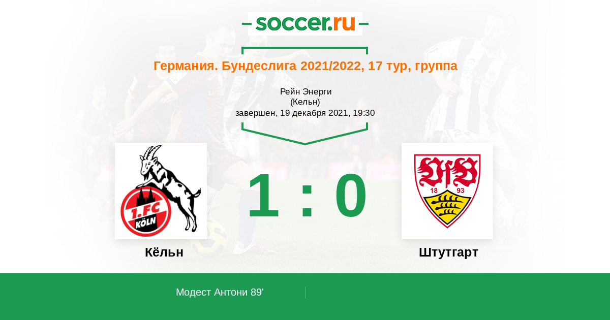 89' (1:0) Модест Антони (27) (Шиндлер Кингсли (17))