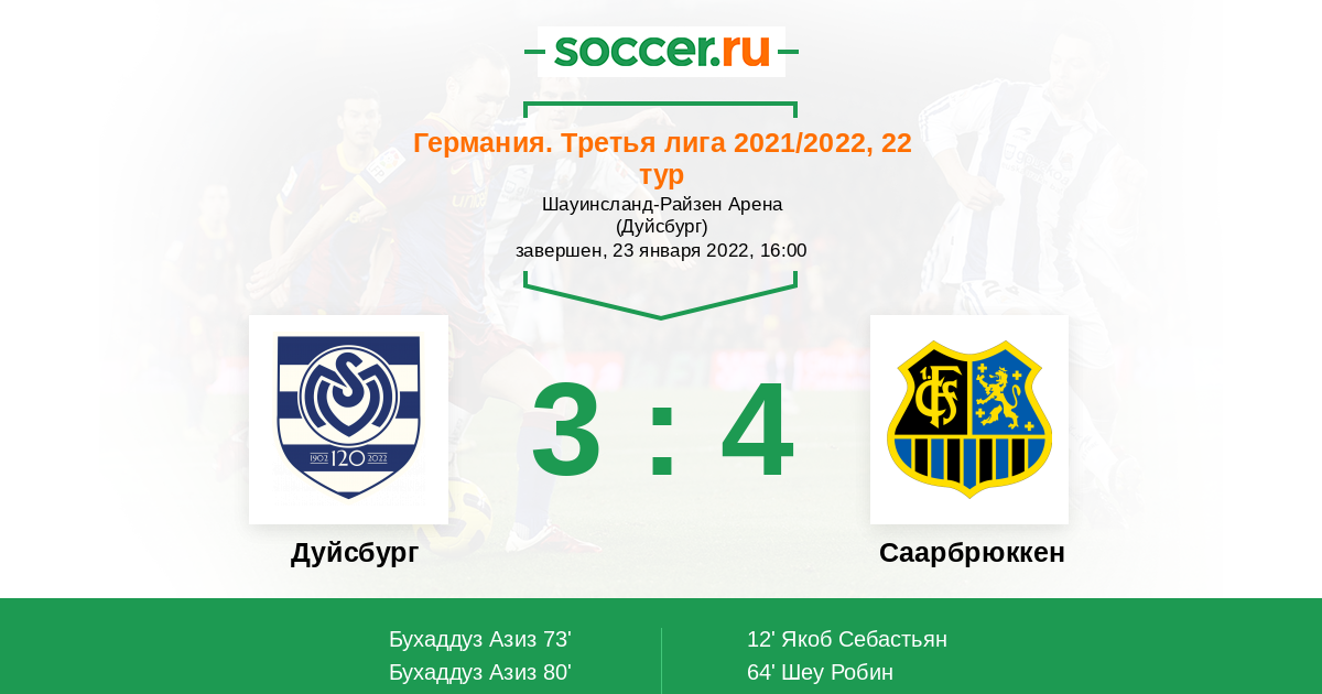 12' (0:1) Якоб Себастьян (24) (Янике Тобиас (25))