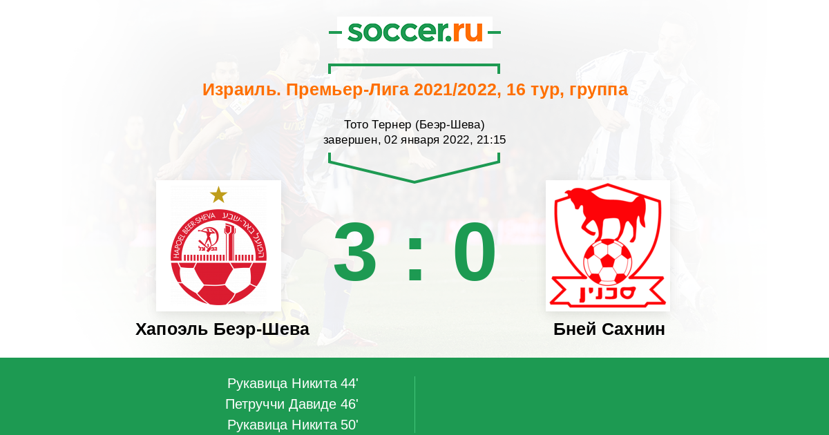 Запасные: 1 Гад Амос, 26 Аран Томер, 7 Хагай Голденберг (с 55'), 99 Нассар Язен (с 77'), 20 Жбедат Фадел, 10 Халайла Мохаммед, 10 Шалата Мофлех (с 55'), 77 Моура Ари (с 77'), 25 Жури Габи