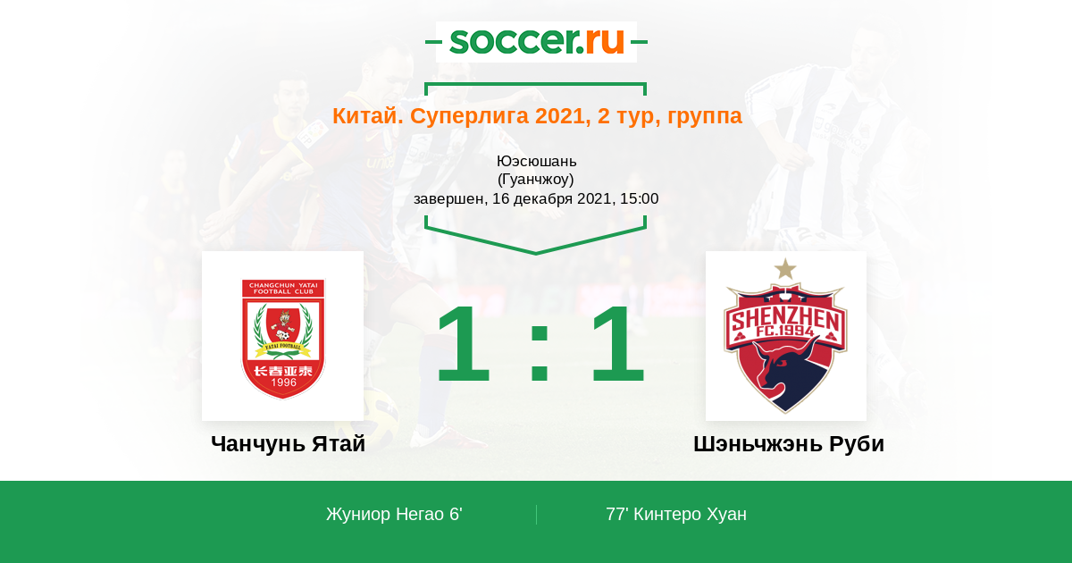 77' (1:1) Кинтеро Хуан (10) (Ли Уаньи (28))