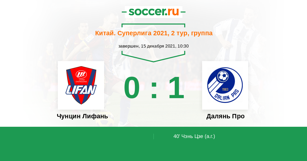 40' (0:1) Автогол Чэнь Цзе (15)