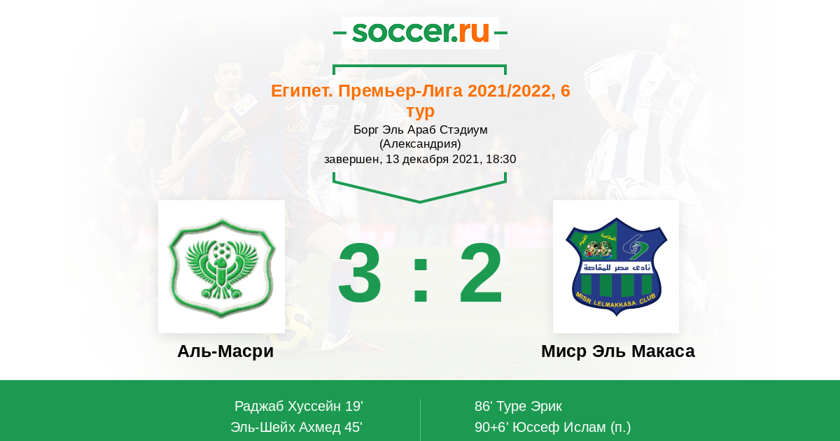 Запасные: 19 Бала Мохаммед (с 79'), 13 Салах Ислам (с 79'), 39 Фараг Зияд (с 84+2'), 33 Абу Эль Хассан Мостафа (с 85'), 24 Шоуша Ахмед (с 90+2'), 34 Эль Гамал Мохамед, 31 Шехата Мохамед, 38 Аль Мазайен Ислам, 4 Ислам Гамаль
