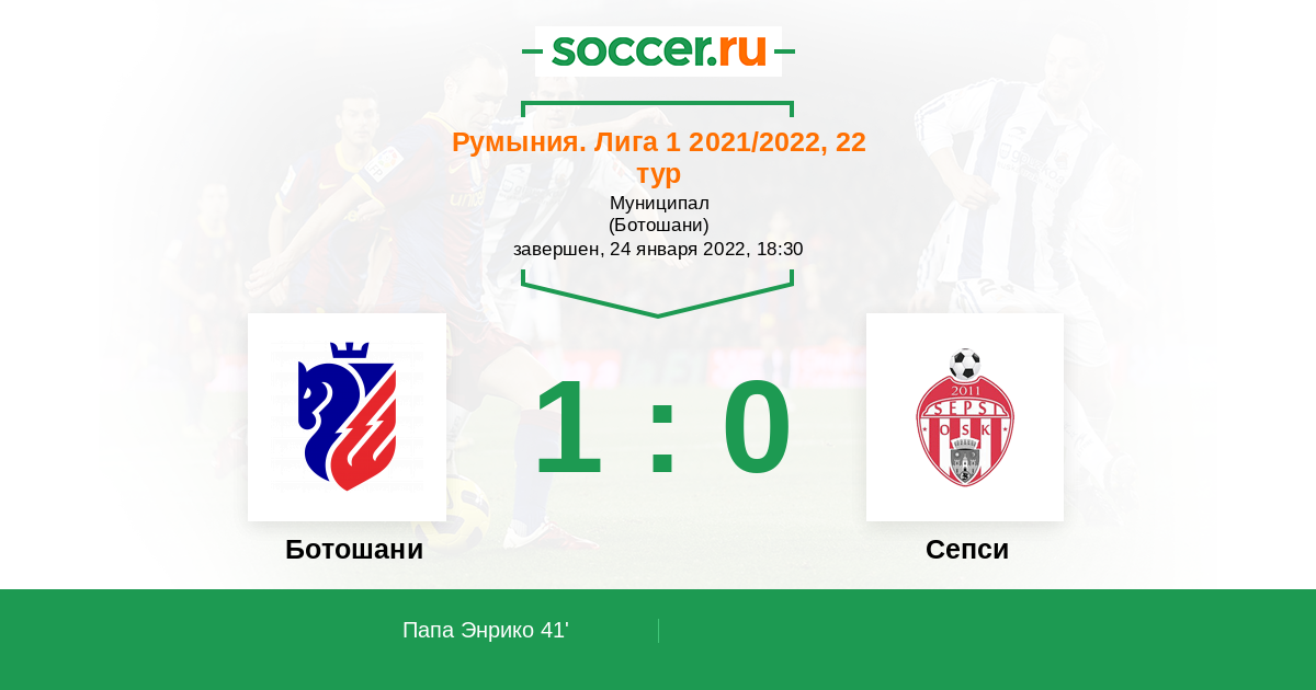 41' (1:0) Папа Энрико (67) (Майлат Себастиан (24))