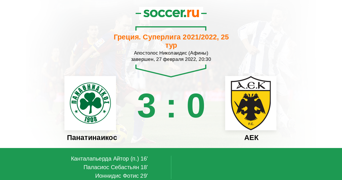 29' (3:0) Ионнидис Фотис (7) (Канталапьерда Айтор (22))