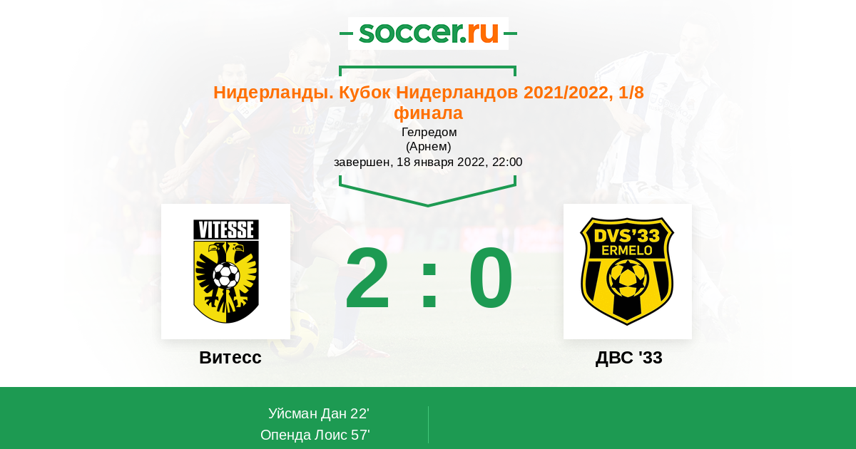 22' (1:0) Уйсман Дан (40) (Опенда Лоис (7))