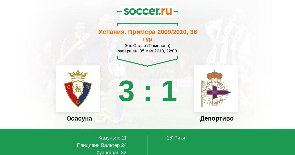 32' (3:1) Хуанфран (12) (Аранда Карлос (20))