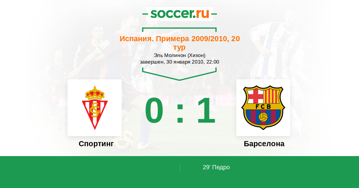29' (0:1) Педро (17) (Иньеста Андрес (8))