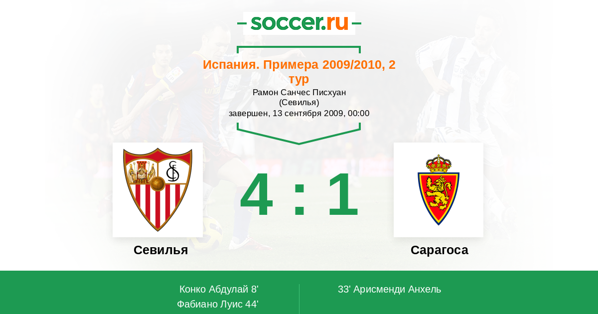 44' (2:1) Фабиано Луис (10) (Негредо Альваро (19))