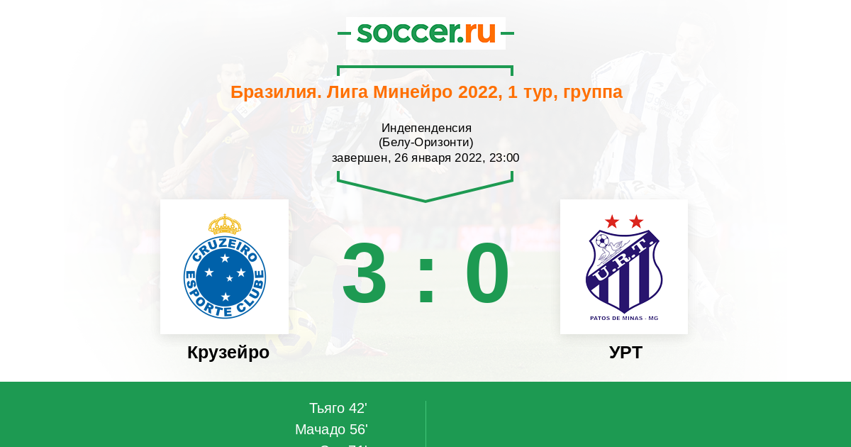 42' (1:0) Тьяго (18) (Рафаэл Сантос (36))