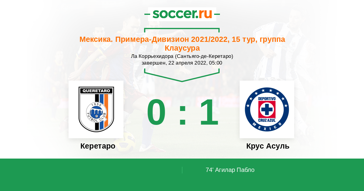 74' (0:1) Агилар Пабло (23) (Хулио Хуарес (4))