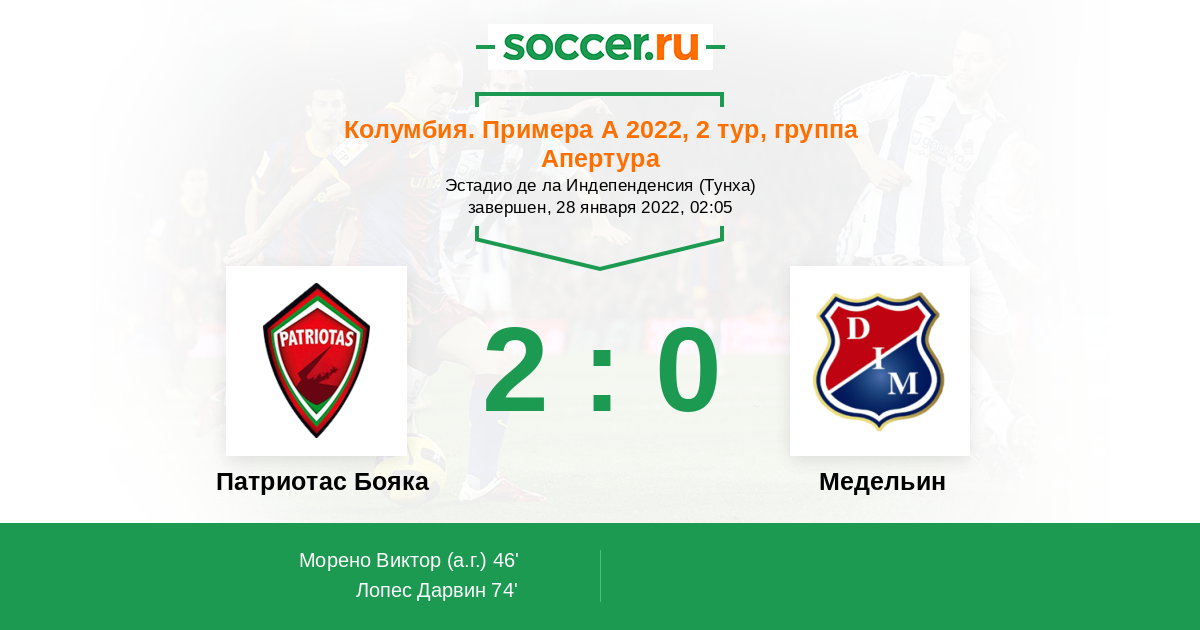 46' (1:0) Автогол Морено Виктор (3)