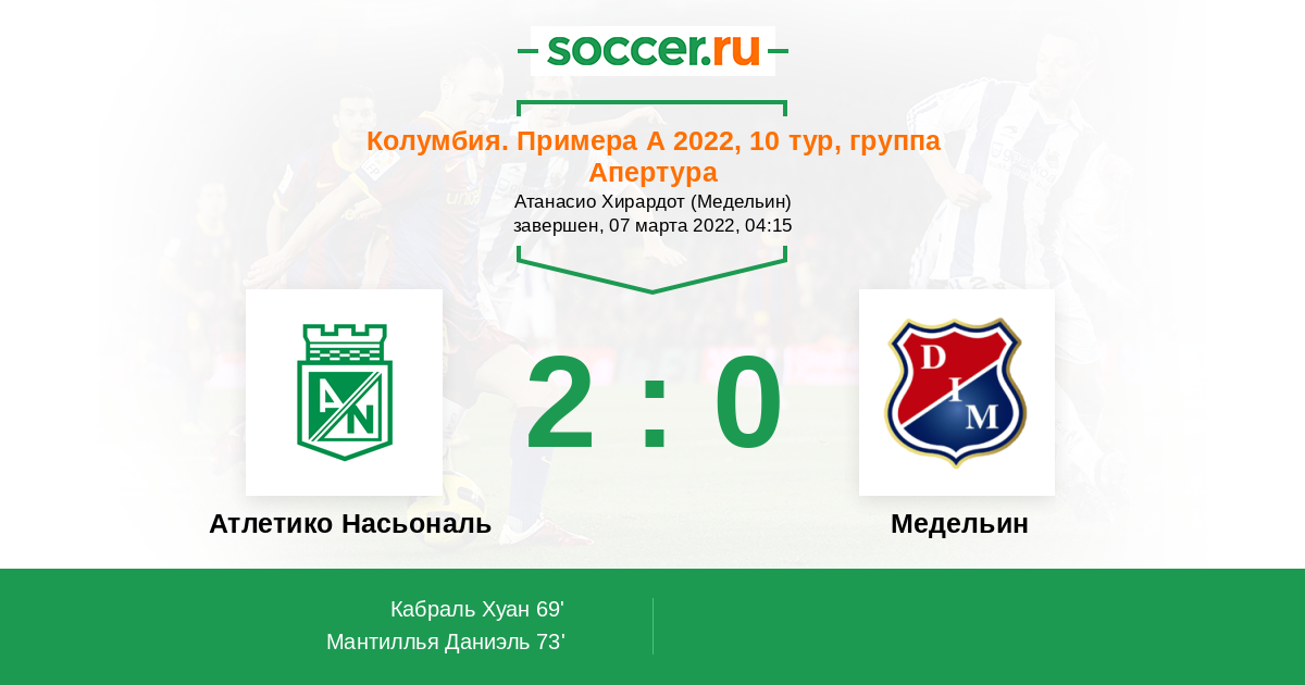 69' (1:0) Кабраль Хуан (22) (Мантиллья Даниэль (16))