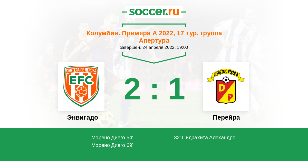 54' (1:1) Морено Диего (13) (Асприлья Ясер (10))