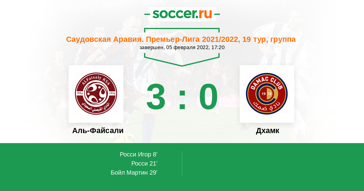 8' (1:0) Росси Игор (3) (Клейсон (37))