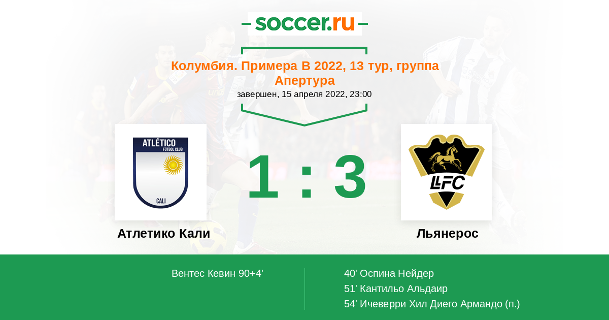 Запасные: Эскобар Жуниор (с 61'), Вентес Кевин (с 61'), Арчила Жан (с 76'), Мохика Андерсон (с 83'), Парра Хуан (с 83'), Харамилльо Хуан, Мена Эйсон