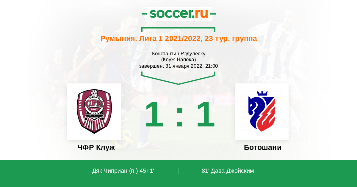 45+1' (1:0) Дяк Чиприан (10)