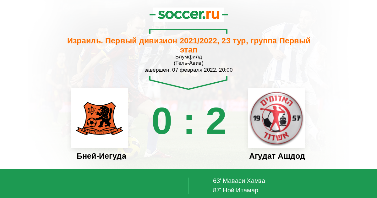 Запасные: Ават Адар (с 72'), Дахан Идан (с 80'), Биттон Лиель (с 80'), Мазал Шавит (с 90+2'), Сисай Йони (с 90+2'), Азулай Афек, Эдри Бен, Херман Гай, Гисин Ноам