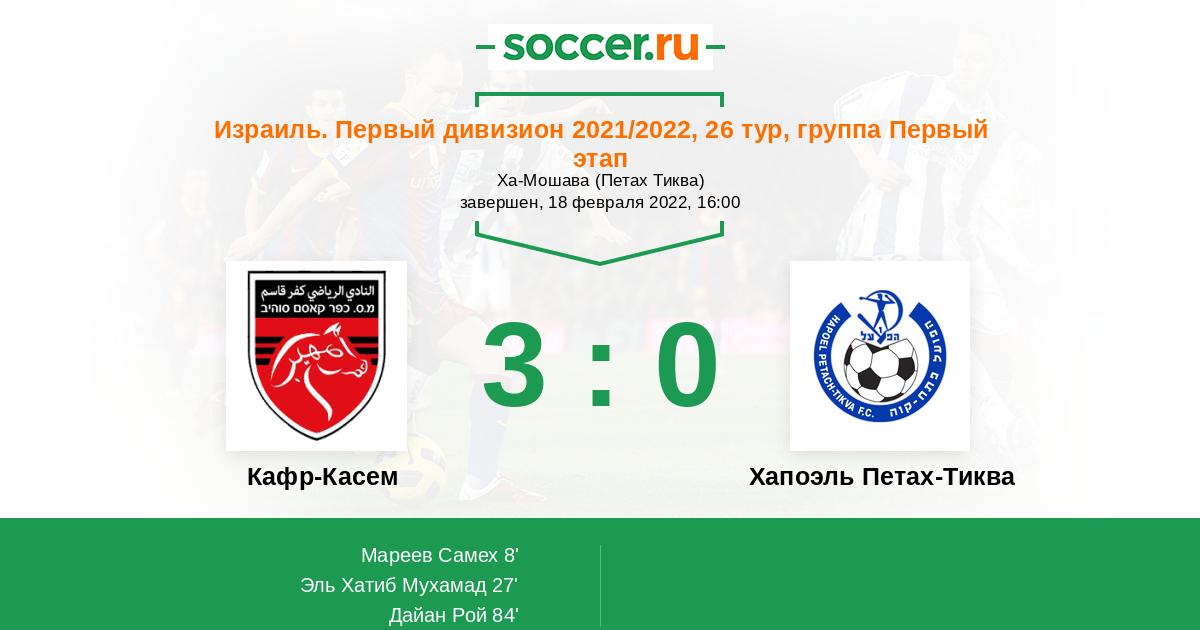 Запасные: Ради Махаран (с 46'), Лейоус Гишам (с 57'), Дайан Рой (с 65'), Хаваз Бен (с 72'), Малка Моти (с 72'), Хассан Алаа, Таха Ахмад, Хатука Тзлил, Лерман Йогев