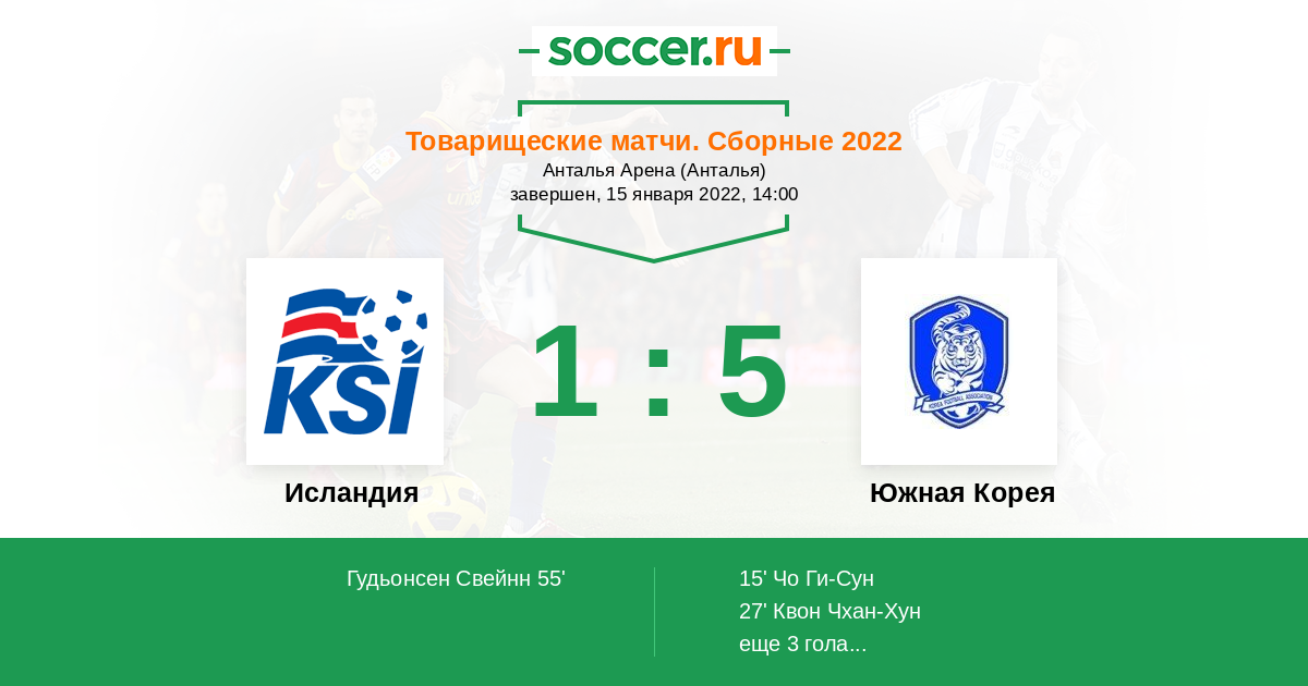 15' (0:1) Чо Ги-Сун (9) (Ким Жин-Ку (16))