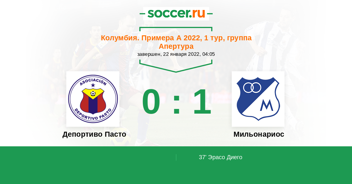 37' (0:1) Эрасо Диего (7) (Вега Стивен (28))
