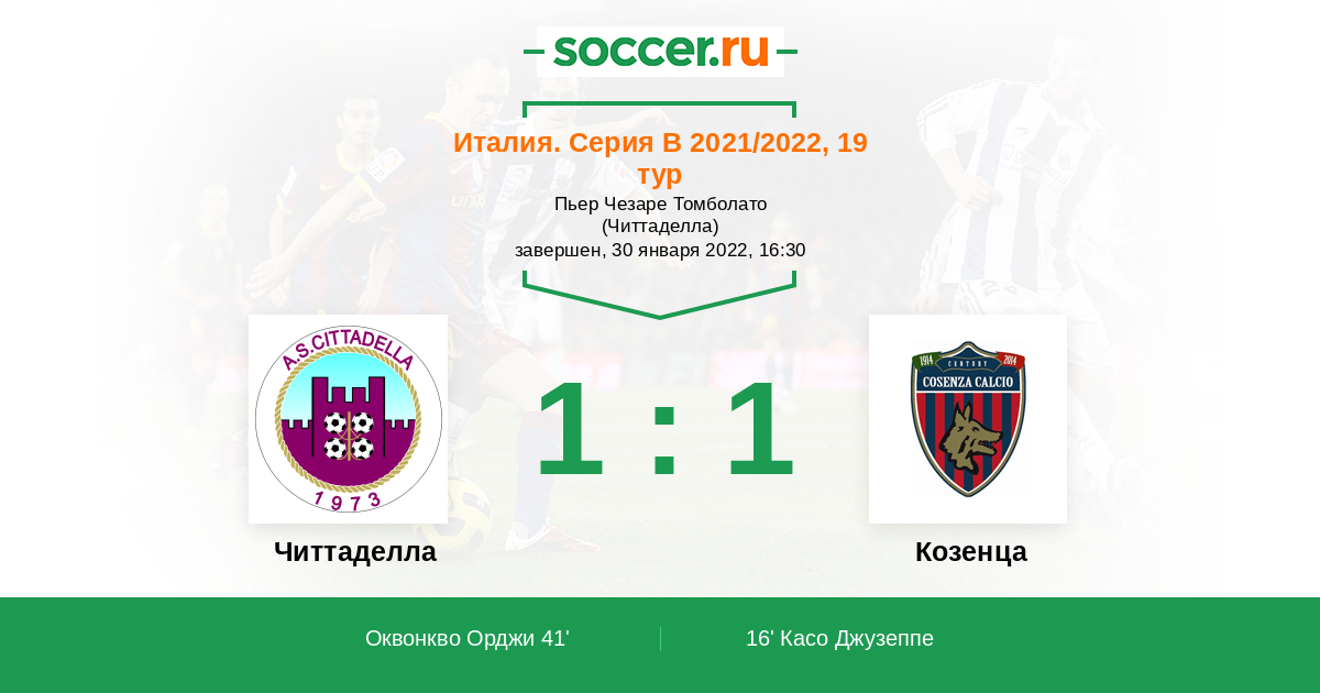 41' (1:1) Оквонкво Орджи (22) (Беретта Джакомо (11))