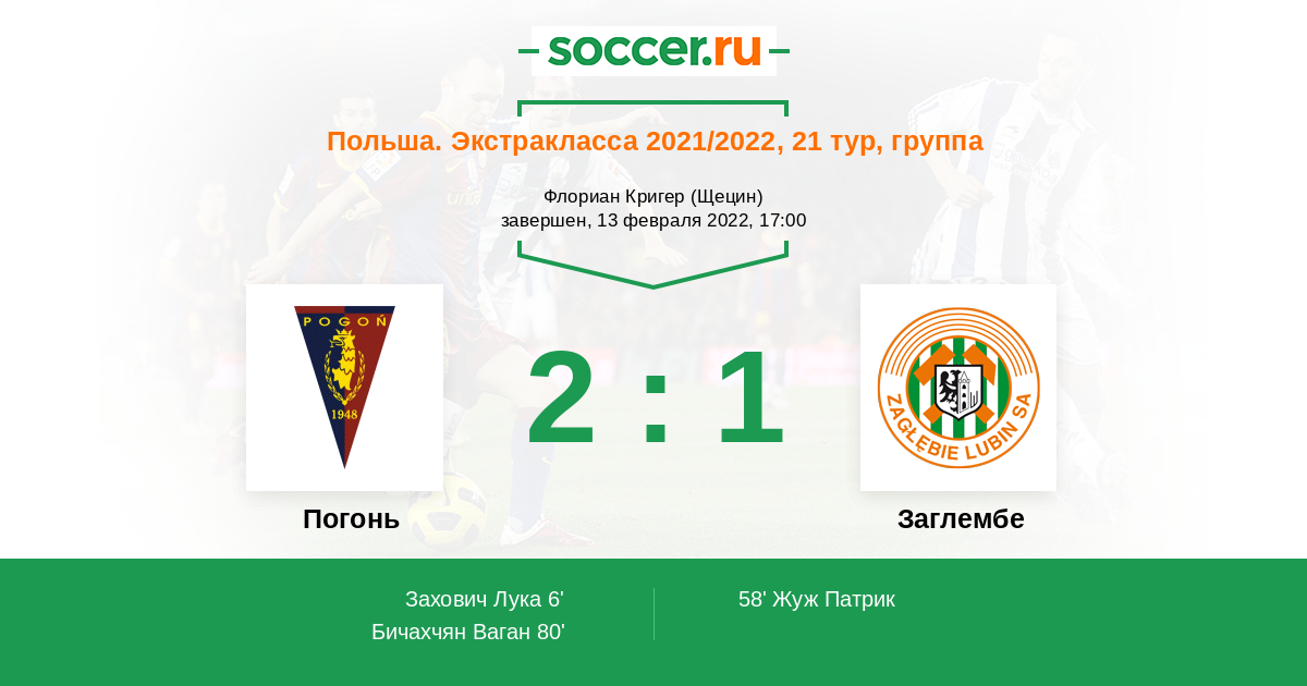 6' (1:0) Захович Лука (10) (Малец Мариуш (33))