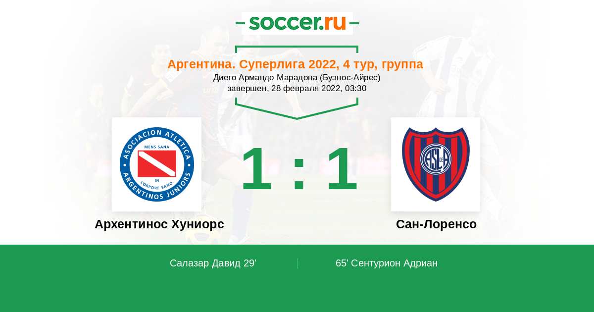 65' (1:1) Сентурион Адриан (10) (Мартегани Агустин (42))