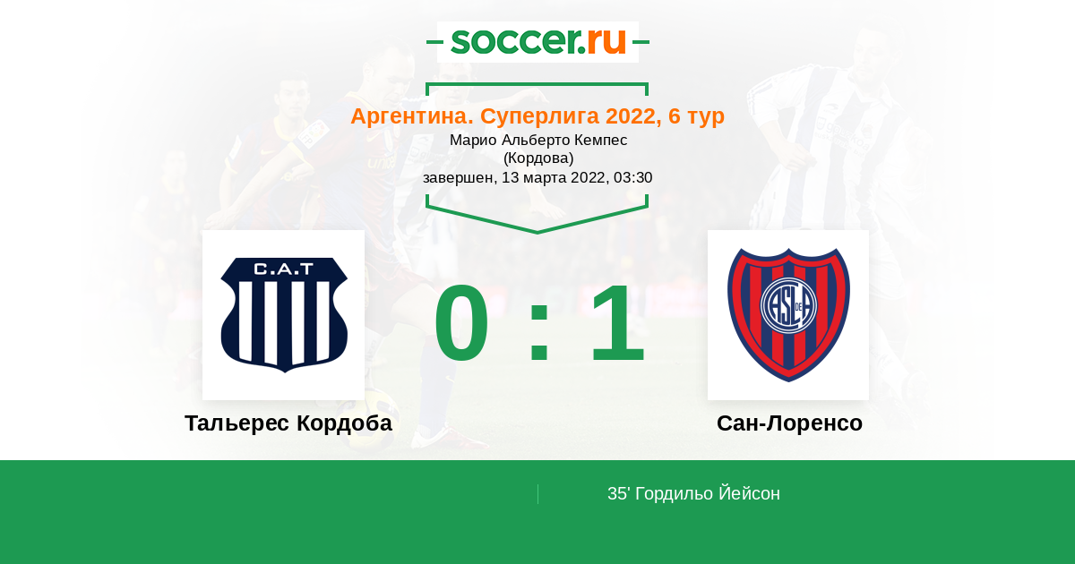 35' (0:1) Гордильо Йейсон (5) (Фернандес Николас (29))