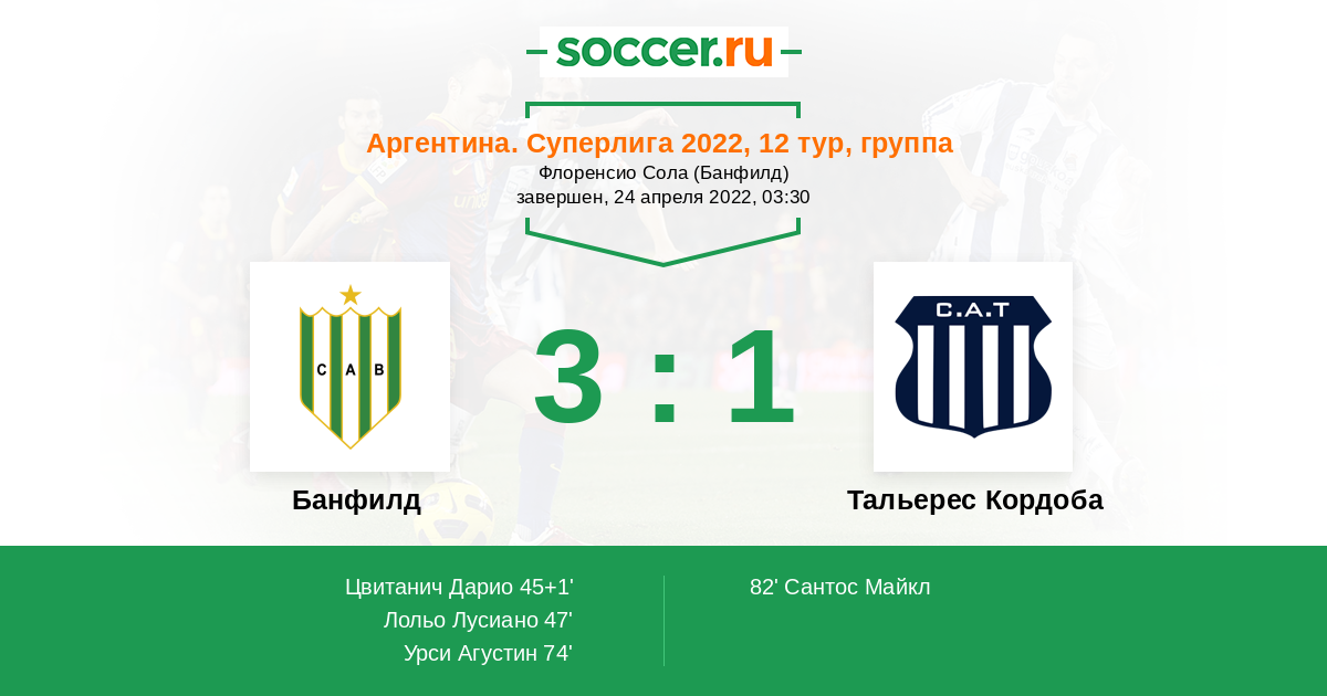 45+1' (1:0) Цвитанич Дарио (20) (Лольо Лусиано (6))