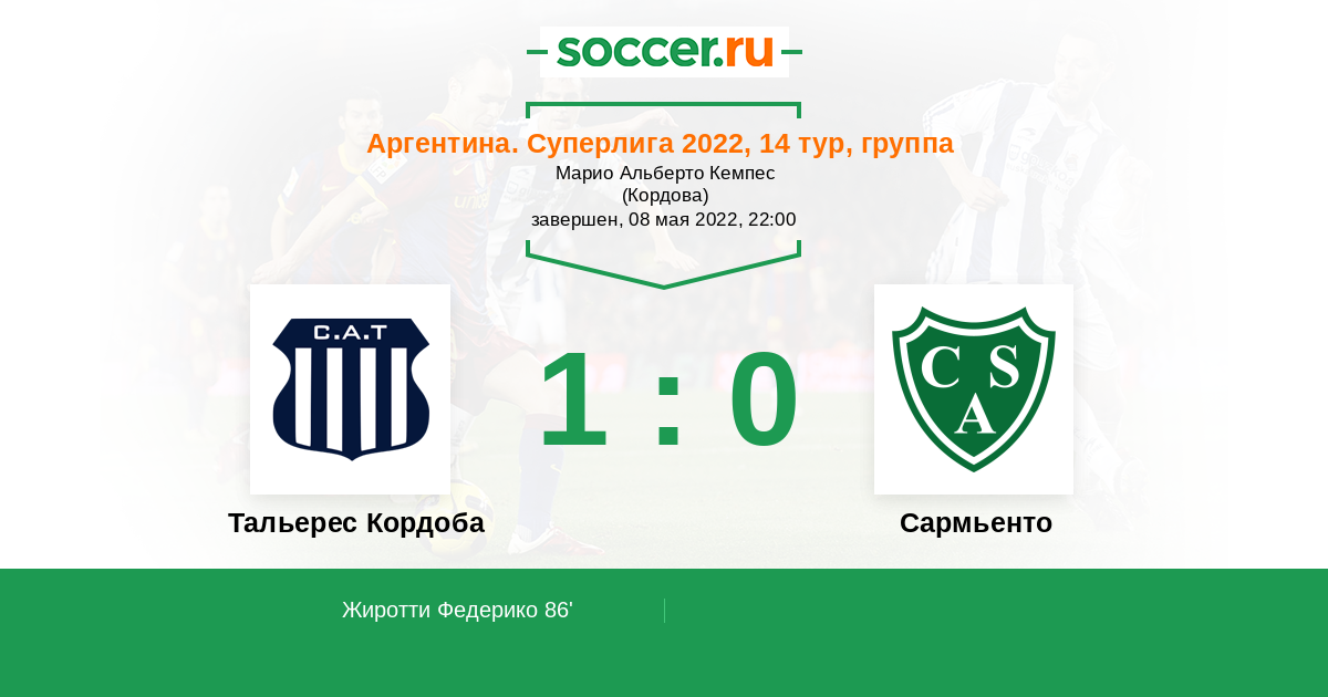 86' (1:0) Жиротти Федерико (19) (Эскивель Матиас (32))