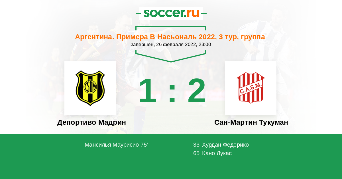 Депортиво Мадрин - Сан-Мартин Тукуман