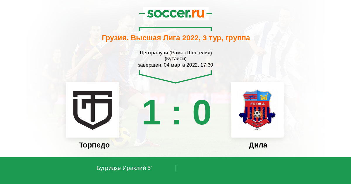 5' (1:0) Бугридзе Ираклий (20)