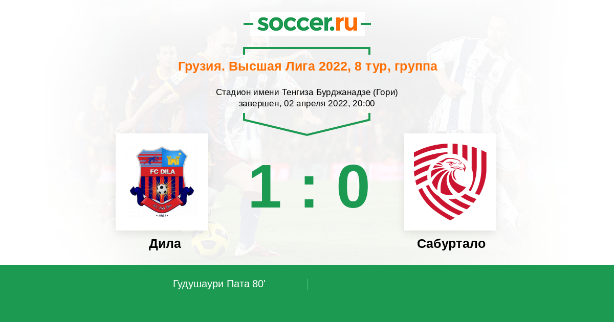 80' (1:0) Гудушаури Пата (7) (Мадинга Франсиско (40))